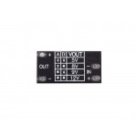 How to adjust the output voltage: Find the A/B pads on the board’s top side, where near the input pads, here is a table for different pads connect / disconnect combination and output voltages: