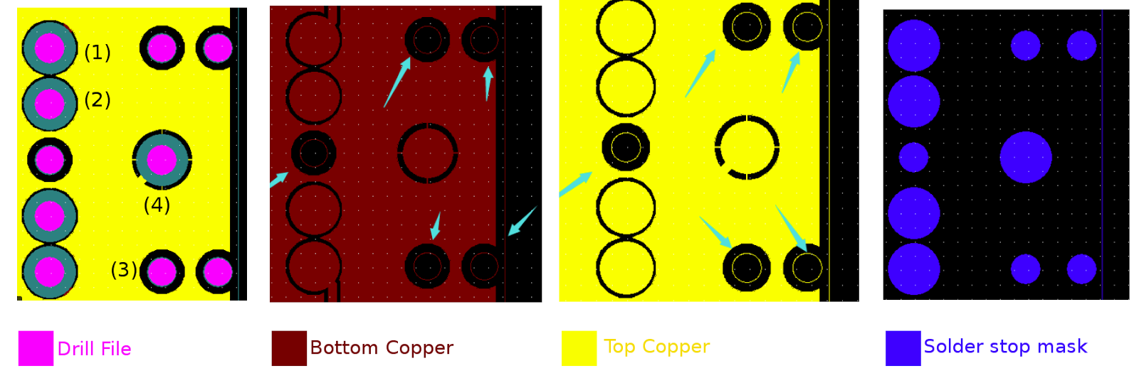 A pad’s copper overlays and is larger than the hole, but has no solder stop mask. This might confuse the manufacturer about whether it should be plated or not. Here is a real-life example: